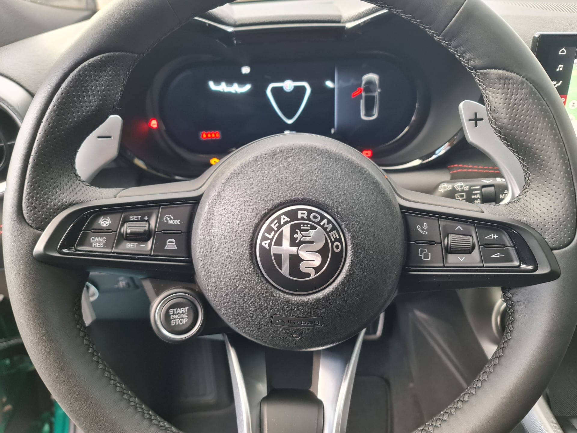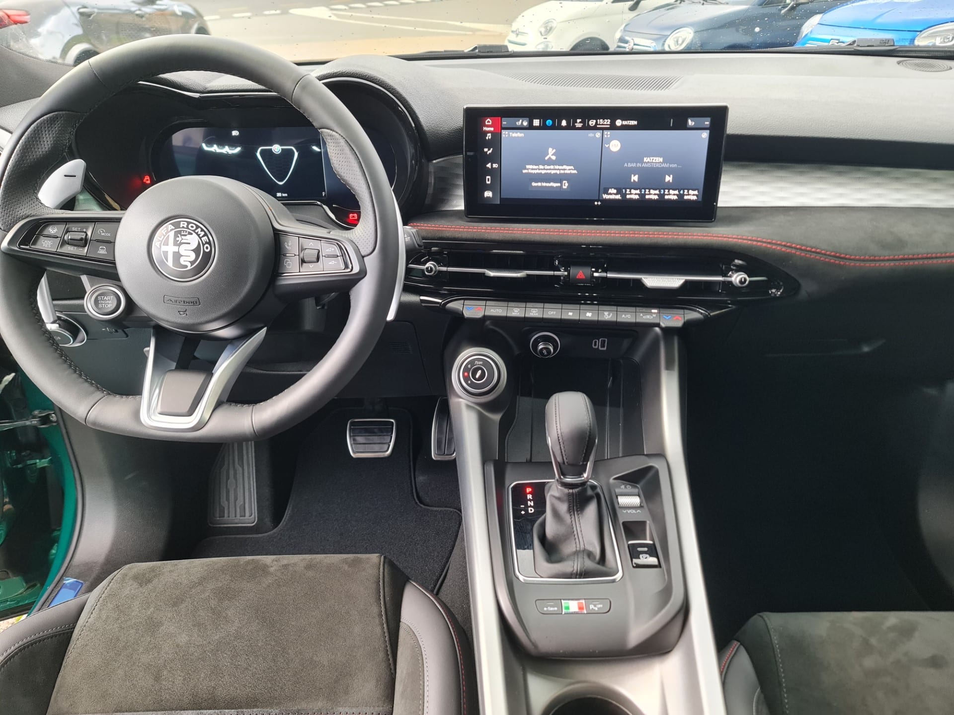 Options séries: Airbags conducteur et passager, Sièges avant chauffants, Lève-vitres électrique avant et arrière, Gicleur de lave-glace chauffants, Rétroviseur intérieur photochromatique automatique, Windowbag, Désactivation de l'airbag passager, Rétroviseur extérieur électrique rabattable, Tapis de sol avant et arrière, Sieges arrière rabattables 60/40, Éclairage d'ambiance, Volant chauffant, Climatisation automatique 2 zones, Jantes en alliage léger 19", Airbags latéraux avant, ESP/ ABS, Régulateur de vitesse adaptable ACC, Capteur de pluie et lumière, Ciel de toit noir, Fixation arrière de siège enfant Isofix, Système Bluetooth, Pédalerie sportive en aluminium, Freins Brembo, Appui lombaire électrique pour siège conducteur, Volant sport en cuir, Keyless Entry System, Vitres obscurcis arrière, Assistant projecteurs, Alerte de change
